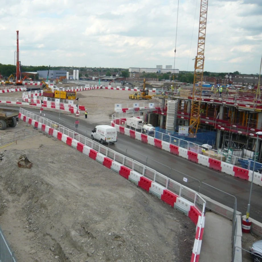 Heavy duty design, advertising facility, buffer strips available, manufactured in U.K. Produced in virgin quality polyethylene, recyclable, increased safety, unique patented locking device, ease of assembly, can be filled with water or sand, different colour options