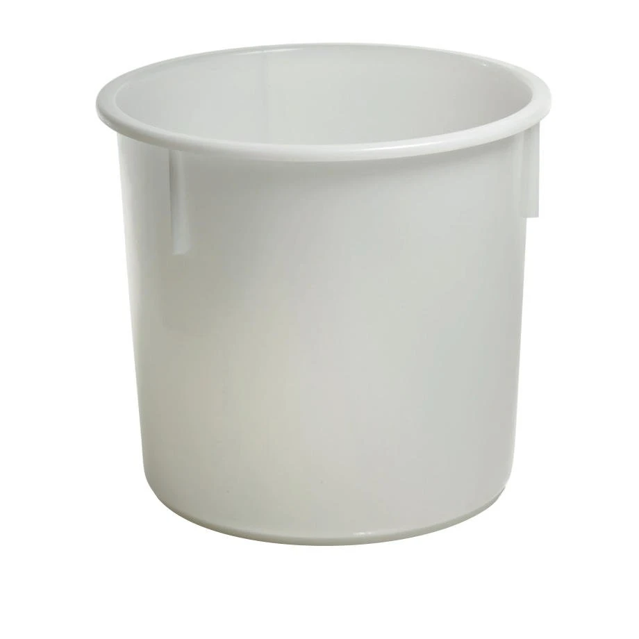 Round containers. Multi-use for heavy duty demands. This range of round containers are made for universal use and are ideally suited for a variety of applications. The product range including bins, tubs and buckets is used in all areas that require maximum hygiene. The food-safe ‘white container range’ is made from pure HDPE and has proven its worth primarily in the meat and food processing industries as well as in many other industries that mix, store and transport goods. Whether used as classic storage bin, mixing tub or as waste bucket for food leftovers – the durable, robust and stable round containers are universally usable. All round containers are temperature resistant from -30?C to +40?C, briefly up to +70?C. The smooth inner and outer walls facilitate easy cleaning and reliable hygiene for the daily use with solid and liquid goods.