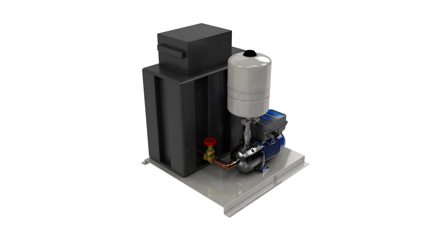 The CAT 5 booster set also know as ‘Backflow prevention booster set’ incorporates a 67 Litre polypropylene break tank complete with a raised ball valve chamber with an AB air gap to WRAS approved regulations. This free standing booster set, is ideal where space is limited, as it has a small footprint of just 650mm x 650mm. The system comes complete with an integrated pressure controller which is mounted directly to th top of the pump.