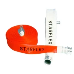 Manufactured with an all synthetic woven polyester jacket Starflex Type 2 fire hose combines a light physical weight with a tough, hard wearing durability. With a low-friction-loss synthetic rubber lining Starflex Type 2 is flexible and easy to handle.