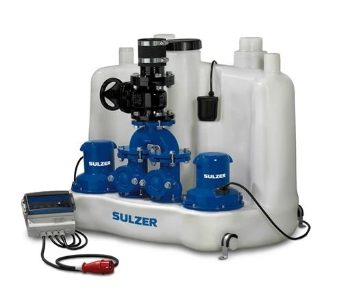 Flood-proof, double lifting station, for automatic sewage pumping from areas below the backwash level in accordance with EN 12050-1. Ideal for effective dewatering of domestic residences, large buildings or commercial developments. Suitable for new