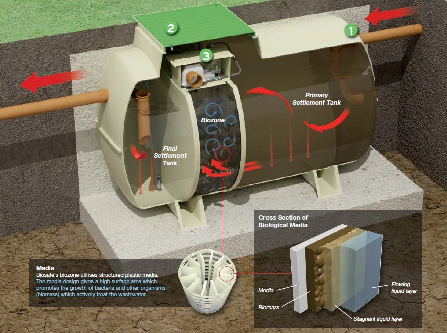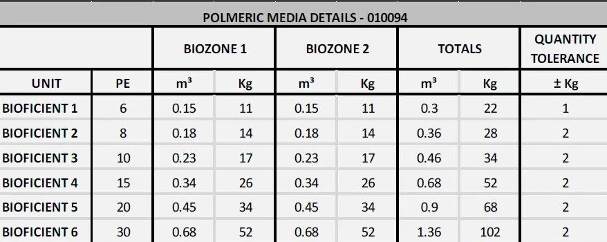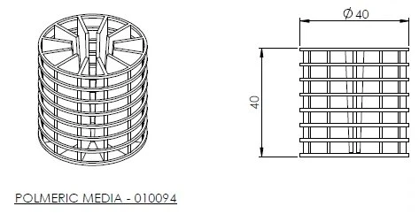 The media design gives a high surface area which promotes the growth of bacteria and other organisms (biomass) which actively treat the wastewater.
