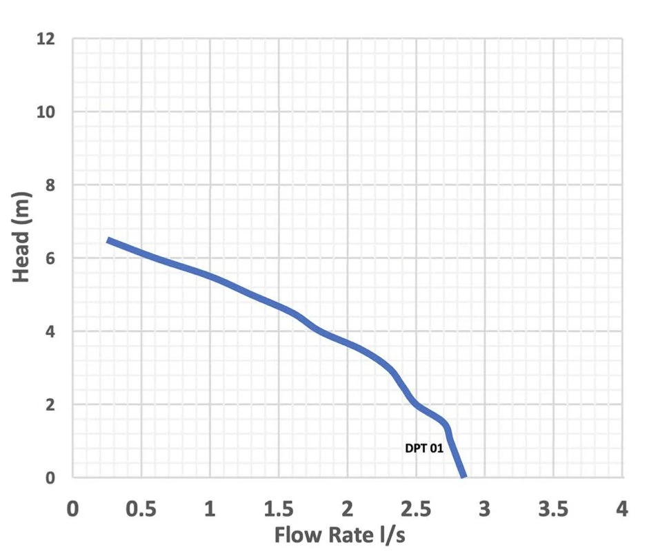 The system consists of a submersible pump with integrated float and external non-return valve and a 50L MDPE enclosure.