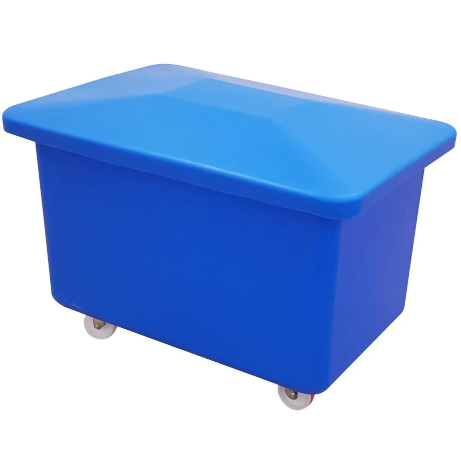 These plastic containers and trolley trucks are tapered and nestable, making transportation highly cost effective.