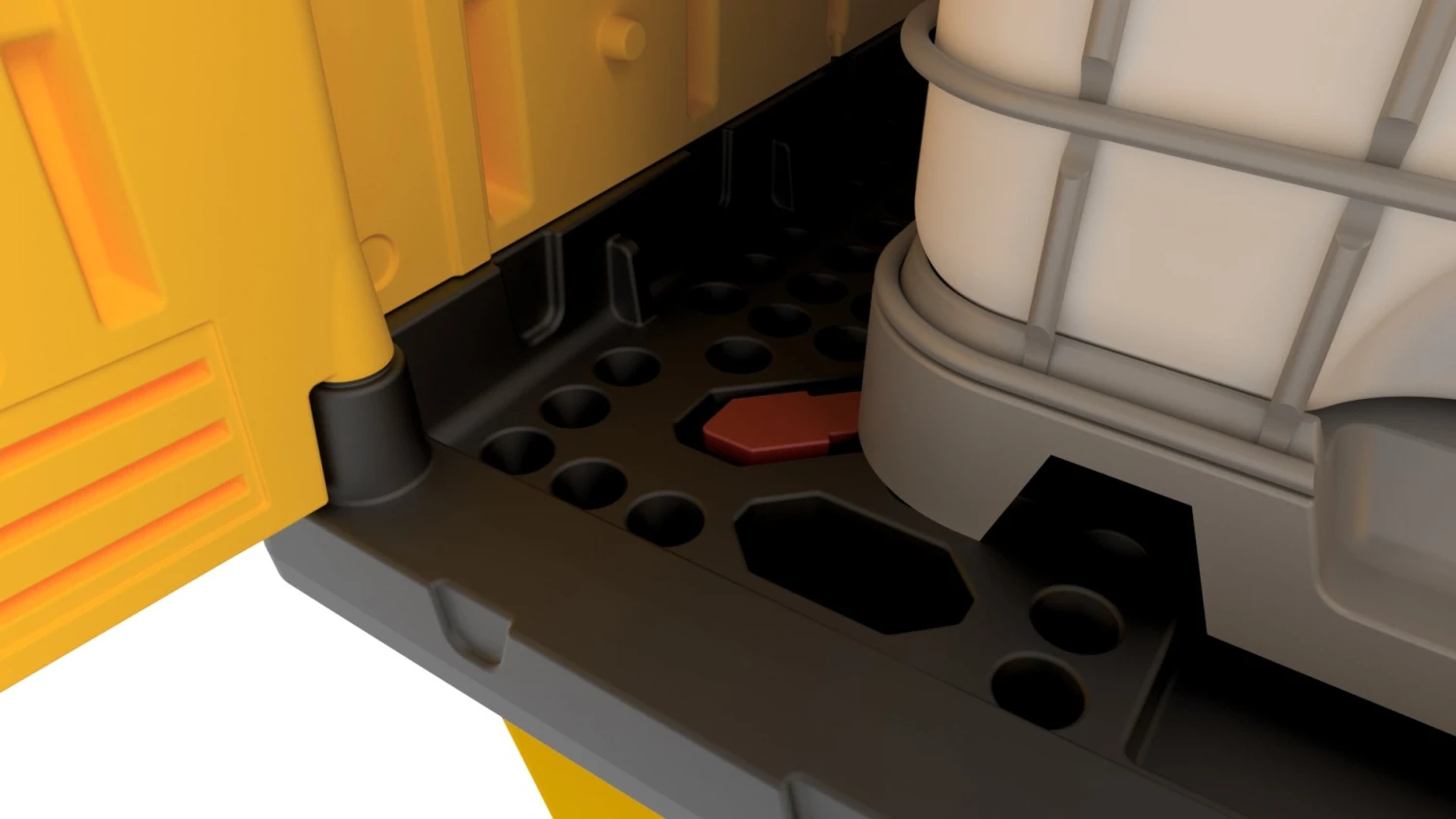 A nestable IBC spill pallet with a weathertight Hard cover.