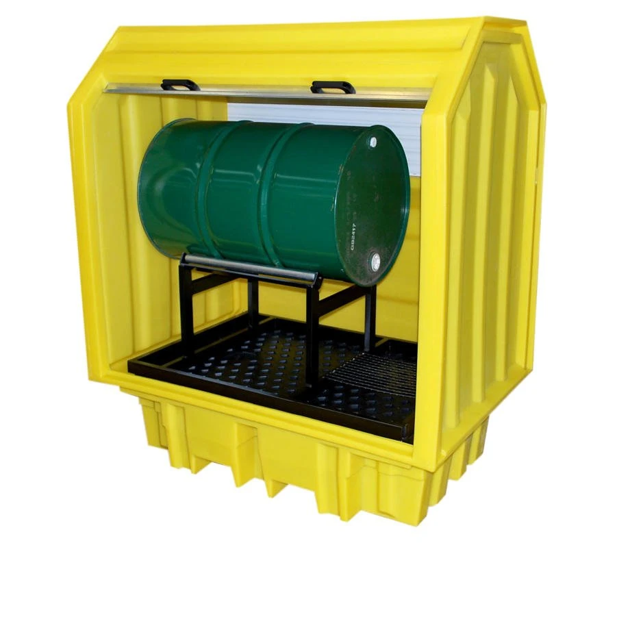 A hard covered bunded store made from 100% recyclable polyethylene. 230 LTR capacity