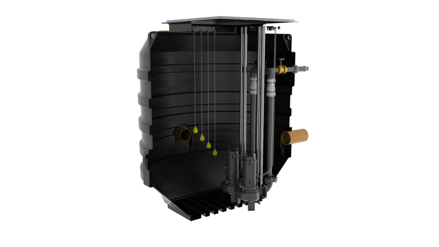 Available as a Single or Twin Pump option, the Mini Monster submersible cutter pump, easily slices through wastewater solids and fibrous materials with its high torque tungsten edged impeller, which would normally cause issues for a standard pump station.