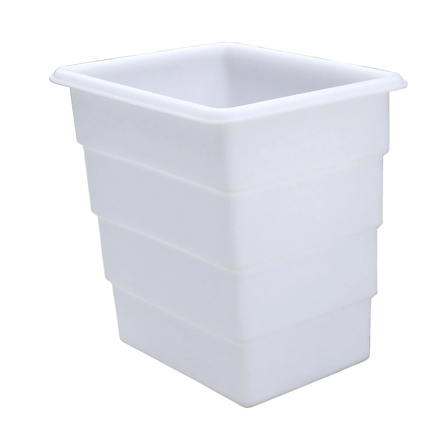 Nestable polyethylene, open top, tank bins / storage containers for wet or dry ingredients, materials or components, these easy-clean containers are lightweight yet highly durable