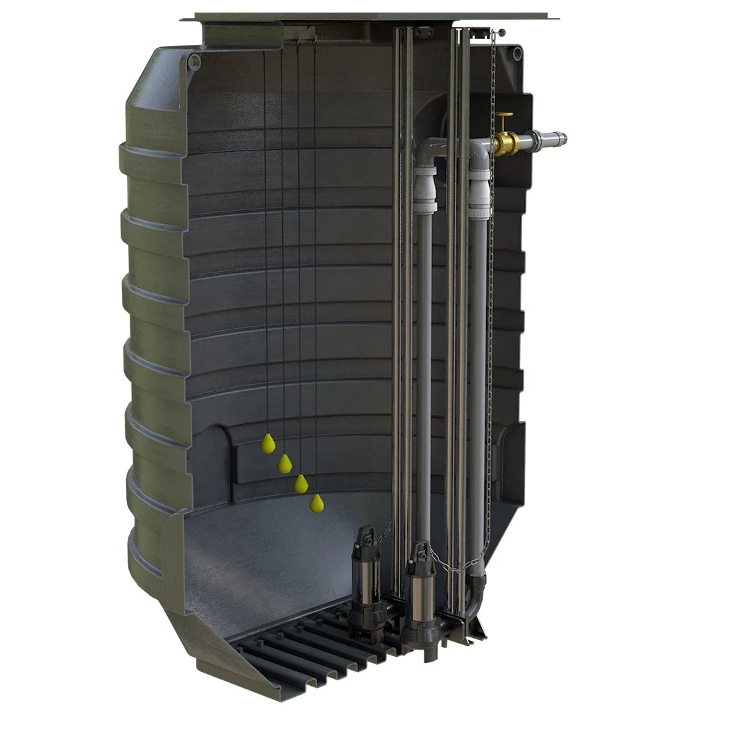 Twin Rigged MDPE – Package Sewage Pumping Station. A packaged pump station is used when gravity drainage on site cannot be achieved. The waste from the site flows into an underground storage chamber, where it is then pumped to the main sewer. Packaged pump stations can be used for both foul water (sewage) and surface water applications. Our packaged pump station systems are designed to have a 24-hour storage capacity and are manufactured to BSEN752-6 standards. The Twin Rigged 6000 Litre Pump Station is suitable for a domestic sewage pumping station for use in areas where gravity flow is not available. It can be used for various drainage applications, with the system also used for the transfer of sewage or waste water, all specially designed for easy installation. The Twin Rigged 6000 Litre Pump station is a compact sewage pump station suitable for small to large houses and also commercial applications. The Twin Rigged Pump Station is available in 5000/6000/7300 Litre capacities and is particularly suitable when water or sewage is collected lower than the main sewer.