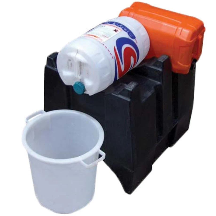 Multi Purpose cradle for the horizontal storage of a drum or two smaller containers. Ideal for use with sump pallets,sump flooring and bund trolleys. Enables the safe decanting of liquids into smaller containers. Made from tough,durable 100% Polyethylene.