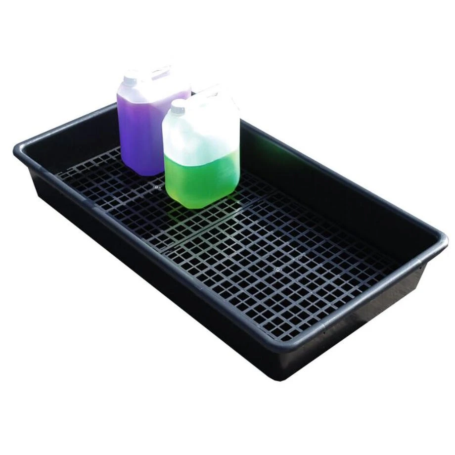 Manufactured from 100% polyethylene this spill tray is ideal for catching spills in the workplace and for storing small items that might leak. The Grids help keep the base of containers or machinery out of minor spills, making it perfect for storage.